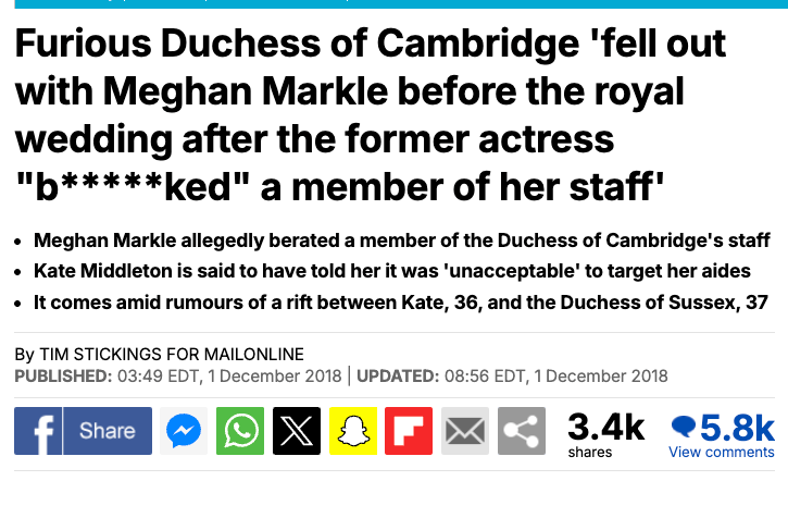 Harry noted that this should have been something the “Fab Four” could have “laughed about,” but he felt the press sensed there was “something bigger” happening and that Kate was “on edge” because she knew she was “going to be compared to, and forced to compete with, Meg.”