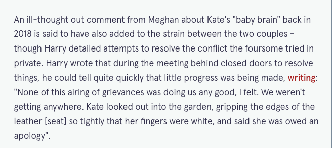 The article in question uses a familiar formula. First, establish that tensions exist. The bridesmaid dress argument from 2018. The “baby brain” comment. The Oprah interview. The Netflix documentary. The memoir. These are presented as context but they function as priming, reminding the reader that Meghan has been Bad before.