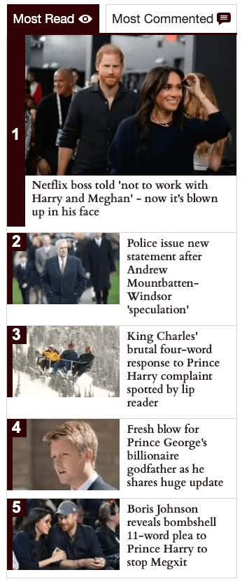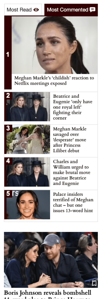 The Express sidebar linked to dozens of additional negative stories, creating a visual environment in which hostility toward the Sussexes is the default setting of the page.