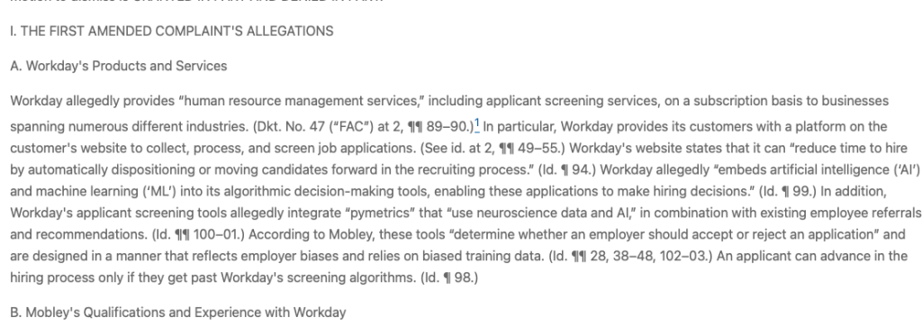 In Mobley v. Workday, an algorithm provider screened job applicants.