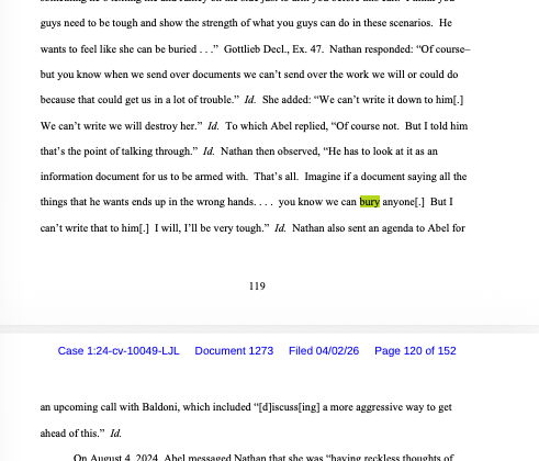 TAG’s brief characterizes all of this as “distribut[ing] positive information and stories about Baldoni and work[ing] to mitigate or minimize negative ones,” calling it “standard operating procedure for public relations professionals.” That is a characterization for the jury to evaluate.