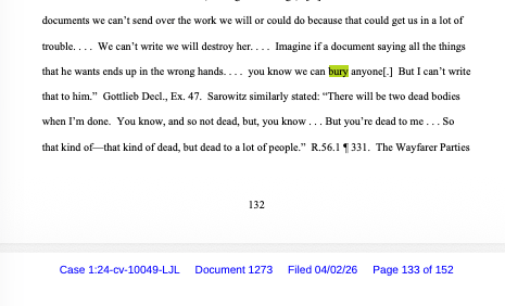 The Agency Group PR LLC filed its motion for summary judgment today, April 10, 2026, targeting the sole remaining claim against it in Lively v. Wayfarer: Blake Lively’s Seventh Cause of Action for aiding and abetting retaliation under FEHA (Dkt. 1284-1285). The motion was authorized during the April 2 conference, the same day Judge Liman issued the 152-page Opinion and Order that reduced the case to three surviving claims.