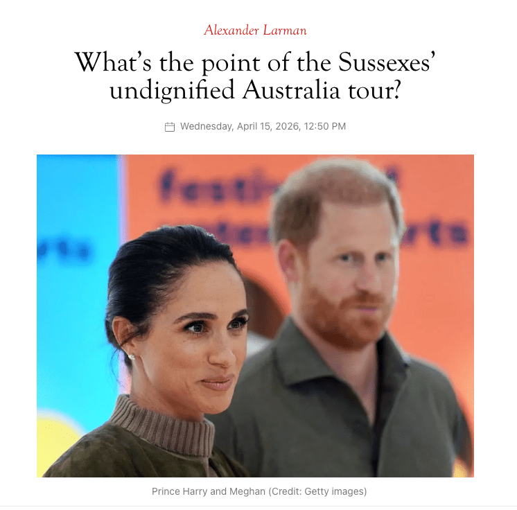 This is not a piece arguing that the Sussexes should not have done the tour. That would be debatable. Instead, it is a piece that structures reality so that the tour appears inherently absurd, undignified, and mercenary. The effect is not to convince readers to change their minds; it is to reinforce a status hierarchy in which Harry and Meghan are figures of cultural diminishment.