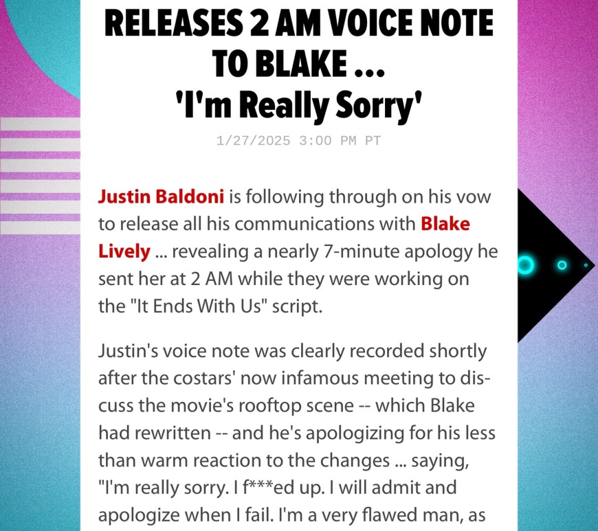 Justin Baldoni’s response to Blake Lively’s heartfelt message about feeling undervalued in the industry has sparked controversy. His lengthy, apologetic voice note lacked clarity and insight, failing to address her specific concerns. Instead, it revealed his inability to handle criticism and performative allyship, undermining his previous claims about their working relationship. Continue reading Justin Baldoni’s 2 AM Voice Note to Blake Lively Exposed